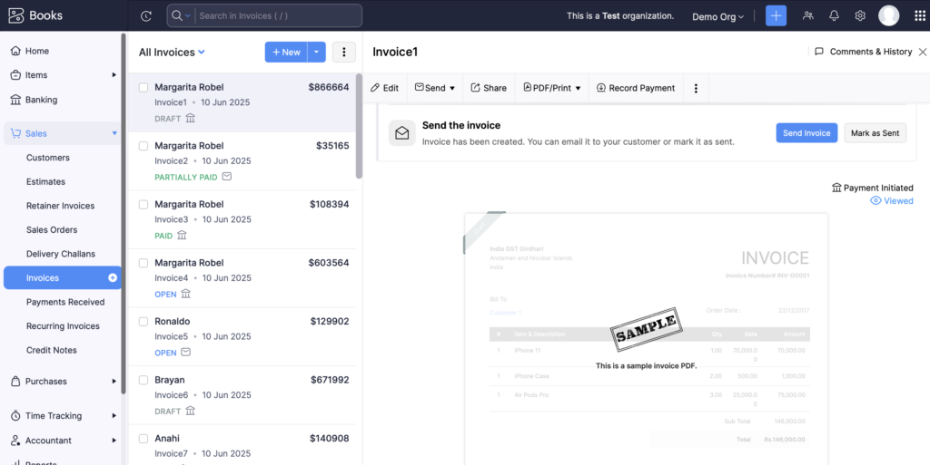 Zoho Books makes invoicing one of its strongest features:
